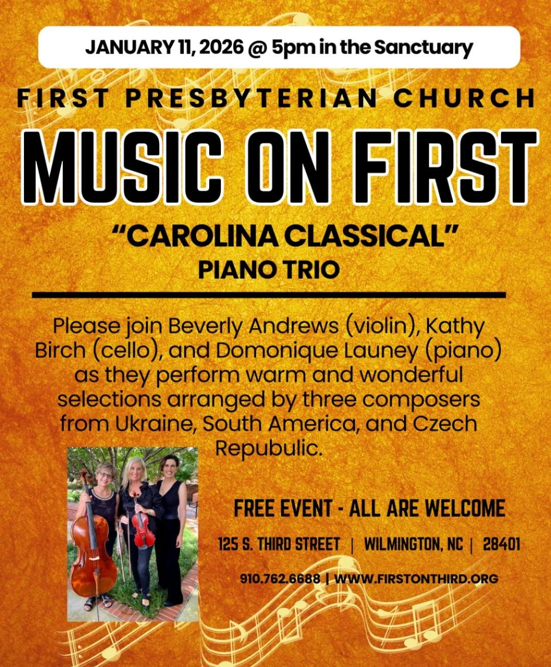 Also on Sunday, Jan. 11 at 5:00 pm in the sanctuary of First Presbyterian Church, the Music at First series presents